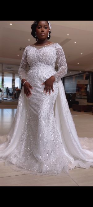 Luxury 2 In 1 Detachable Mermaid Dress with 100cm tail, Package includes , veil, Bouquet , Tiara, Earring, Bracelet, Bride robe, Flip flops